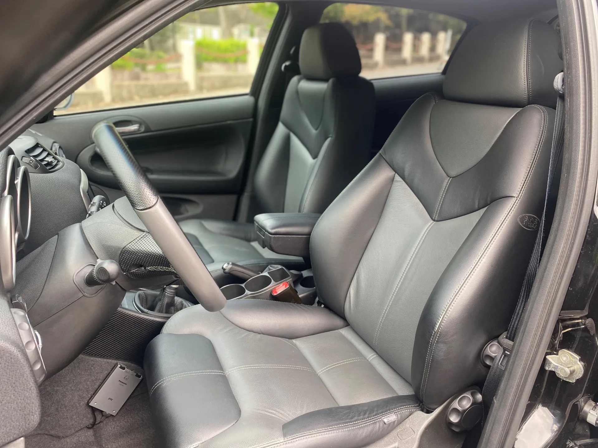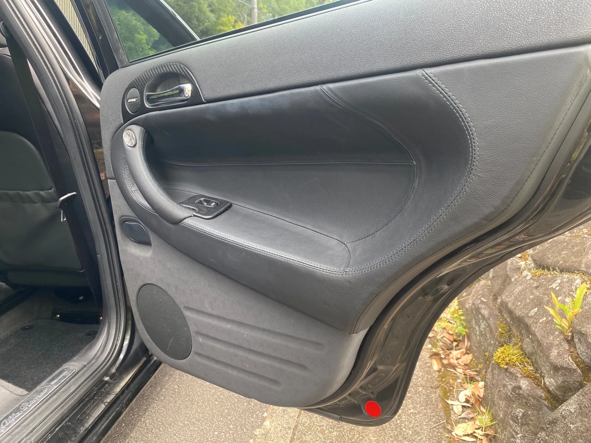 シート、ドアトリムも統一され、濃いグレーレザーにグリーンステッチが施されています。