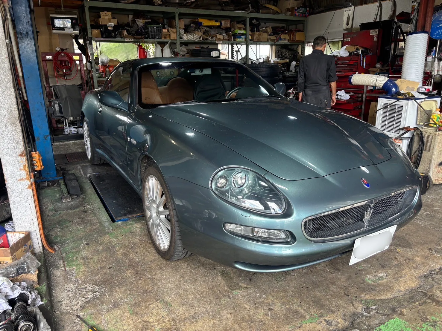 マセラティクーペは車検にて。相変わらず綺麗なグリーンです。