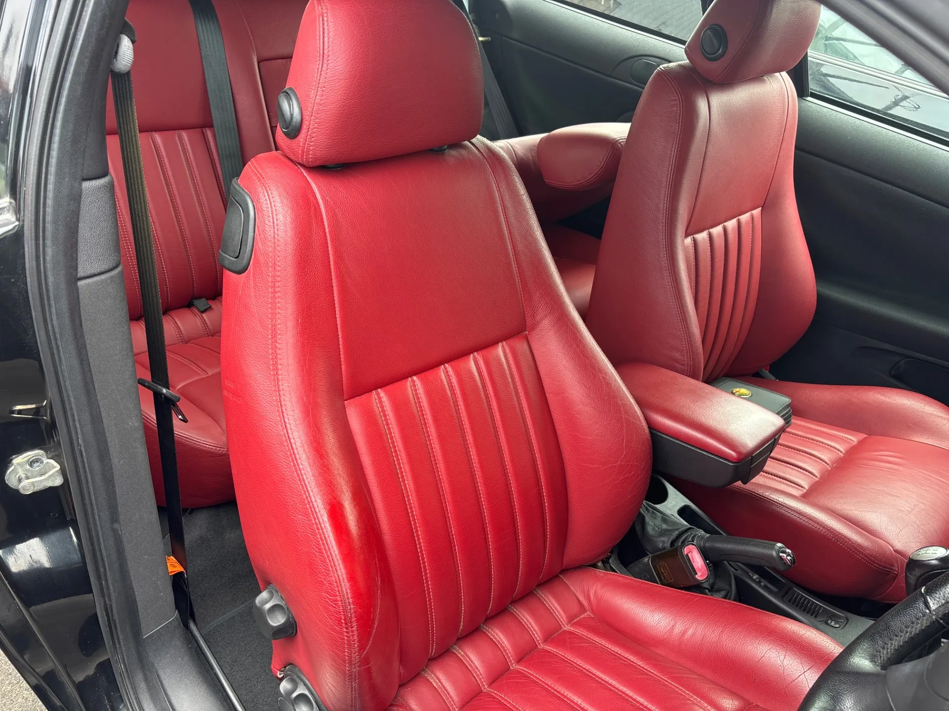 イタリアンなレッドのレザーシートに、BBSアルミホイール、ルーフライニングも張り替え済みで、室内の印象もグッと引き締まりました。