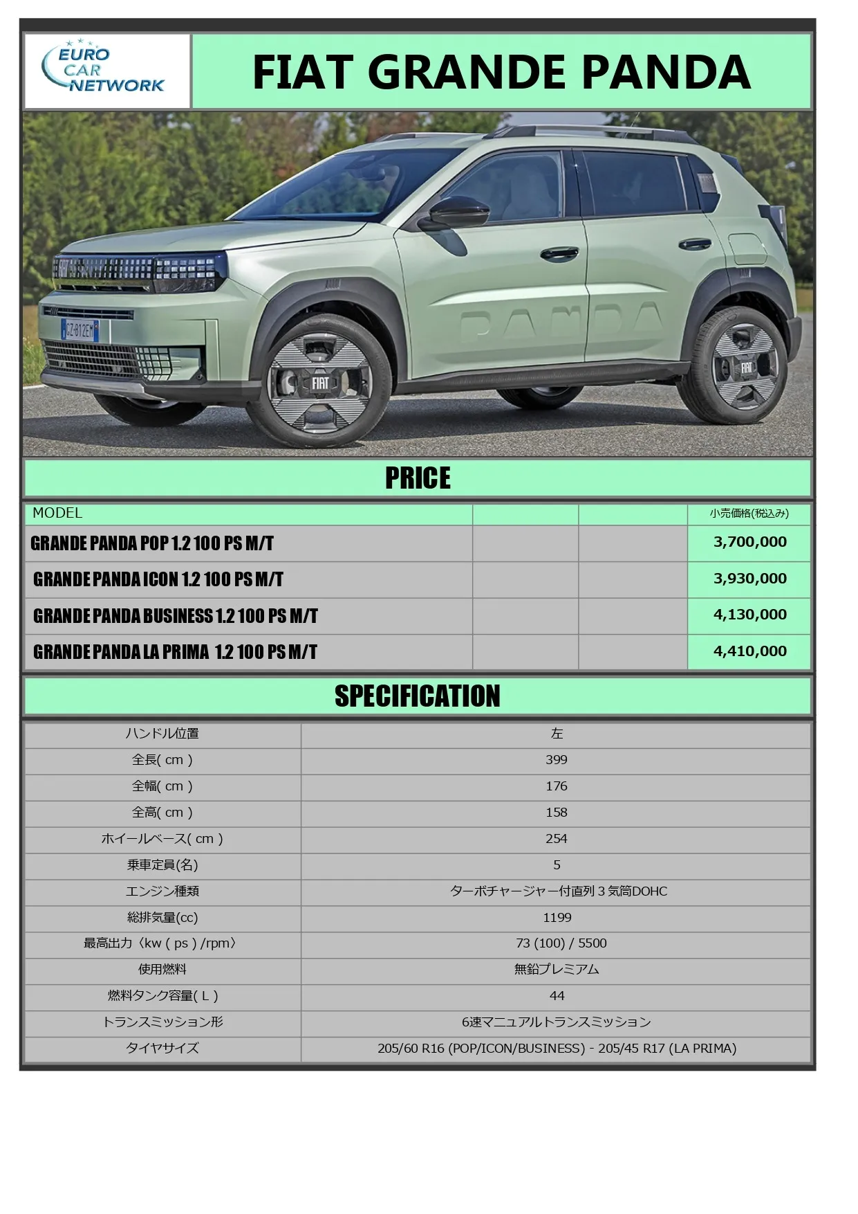 FIAT「GRANDE PANDA」ガソリン仕様のご案内です!