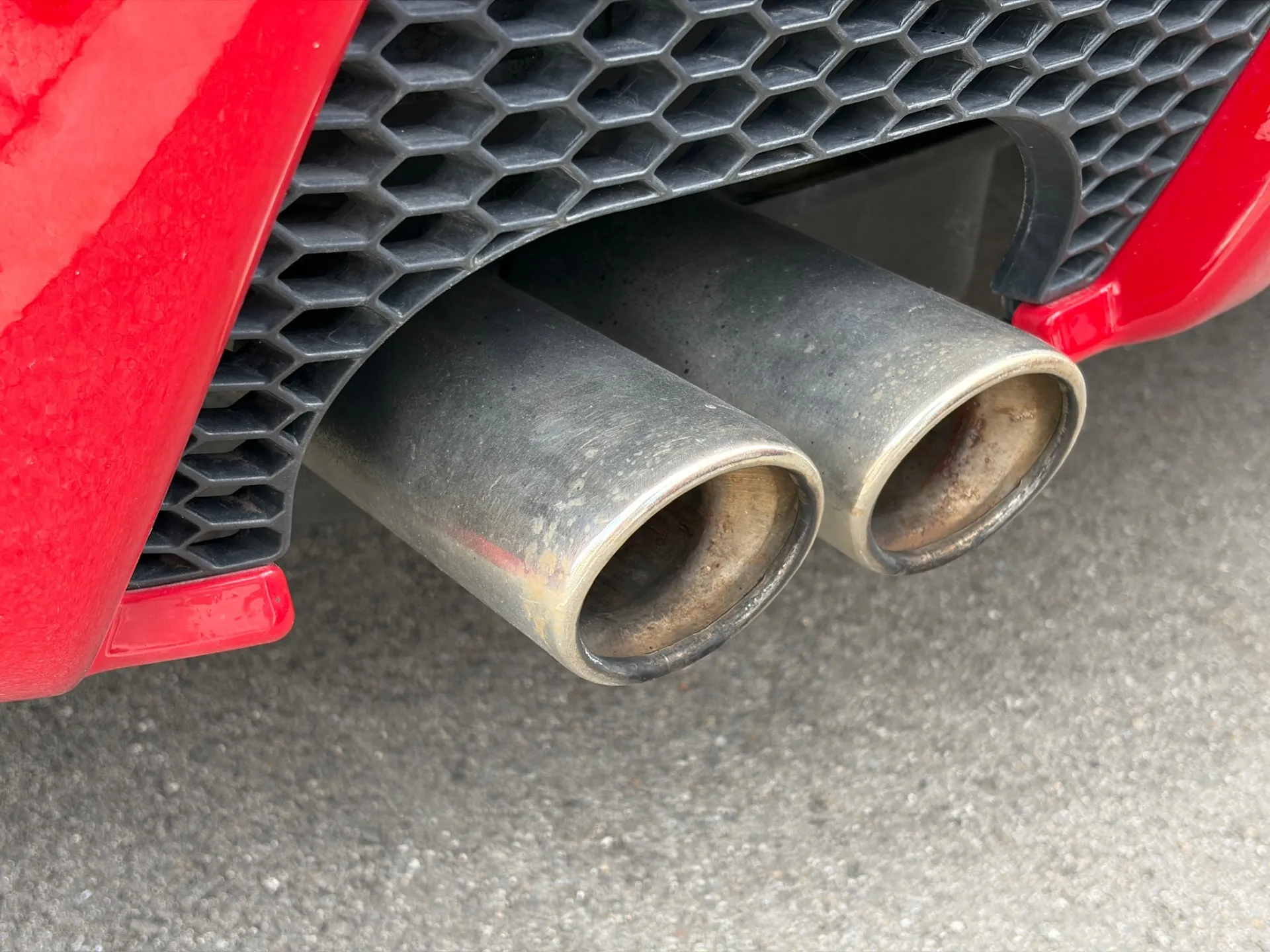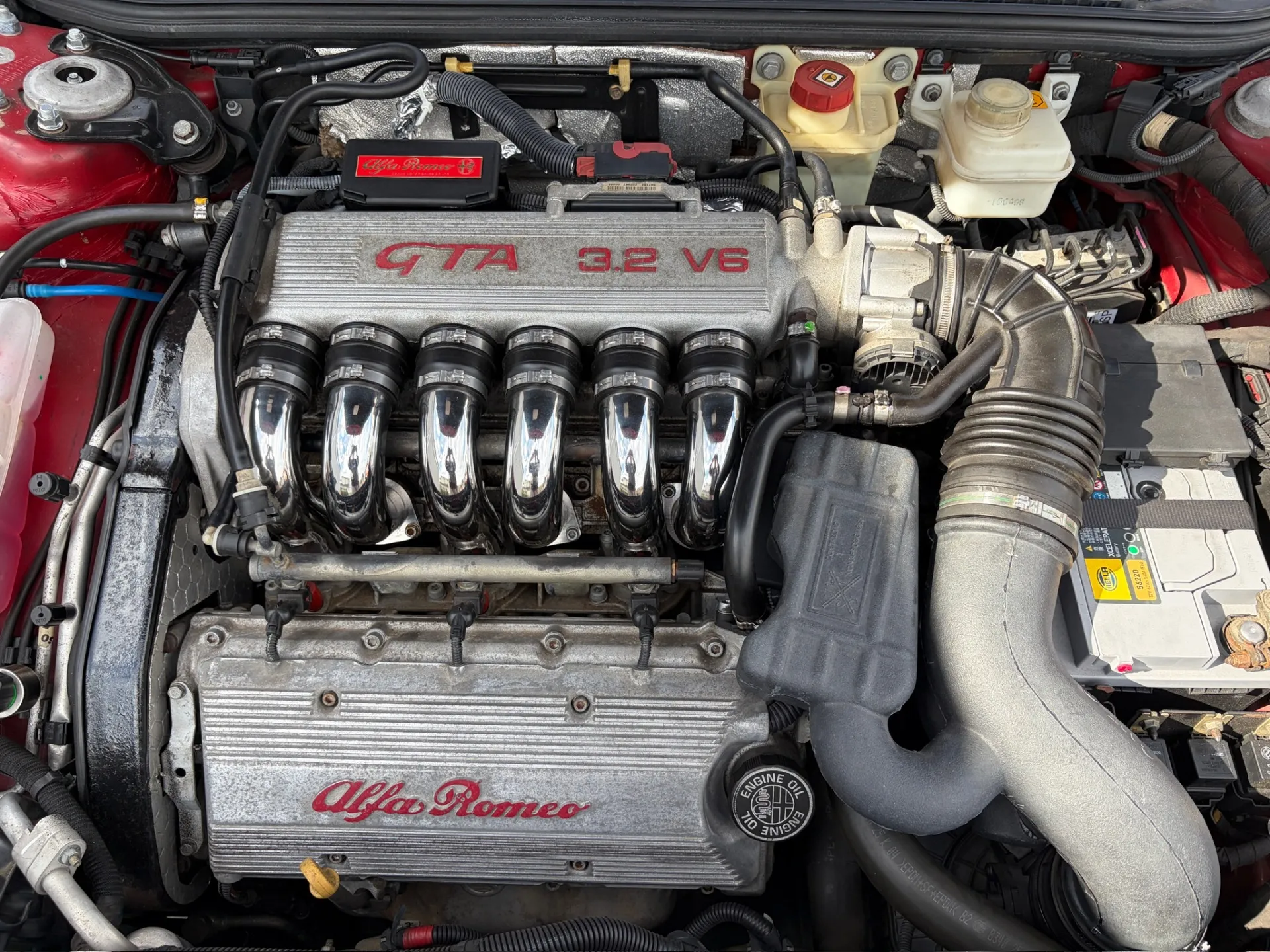 マフラーは、2本出しGTA純正の物 V6エンジンは社外品に変えるだけで全く違う音色を奏でます♪が、エンジン吸排気音を堪能したいのであればやっぱりノーマル 十分イイ音しますよ〜147GTA赤で程度の良いのは中々無いです。