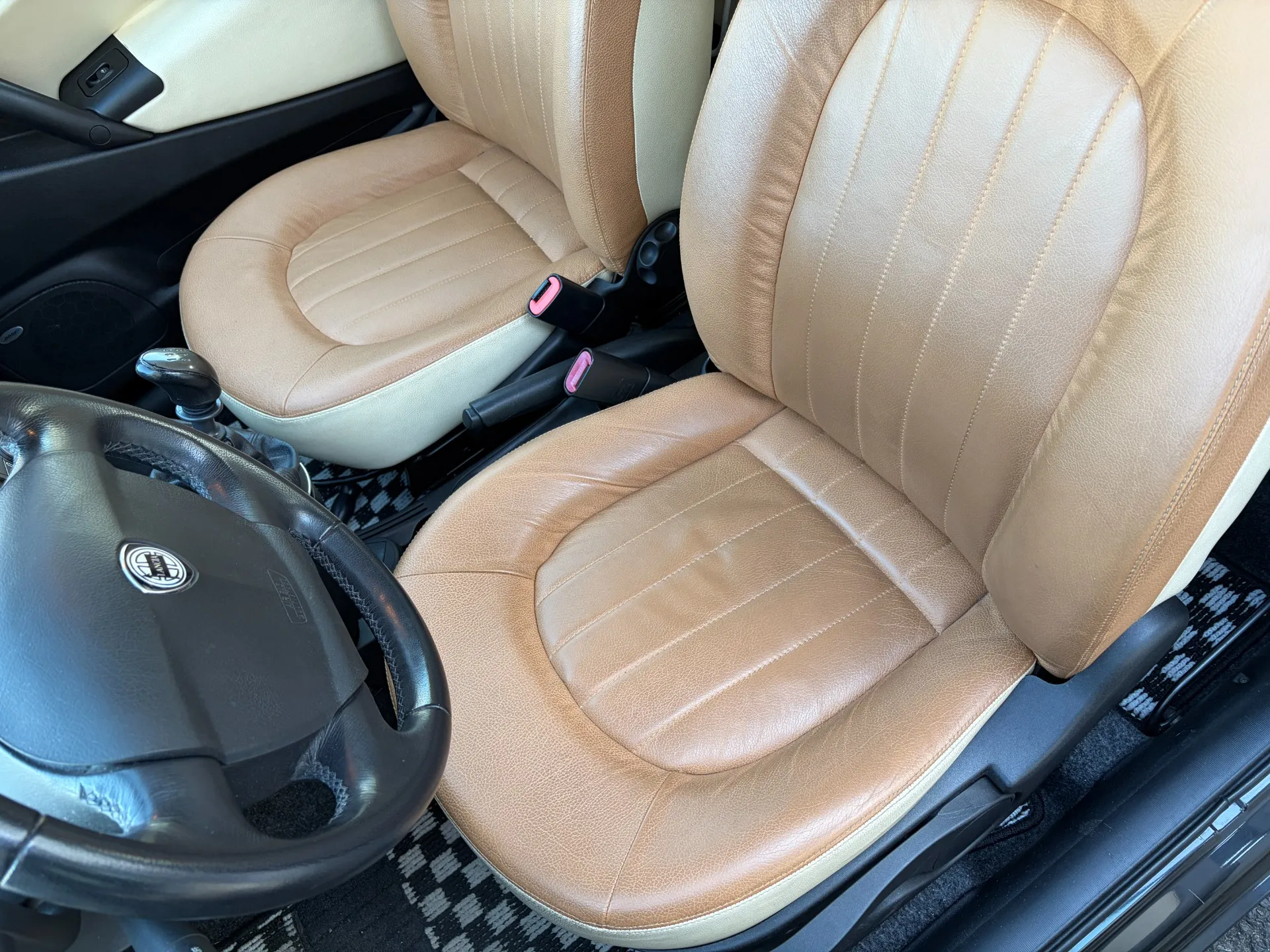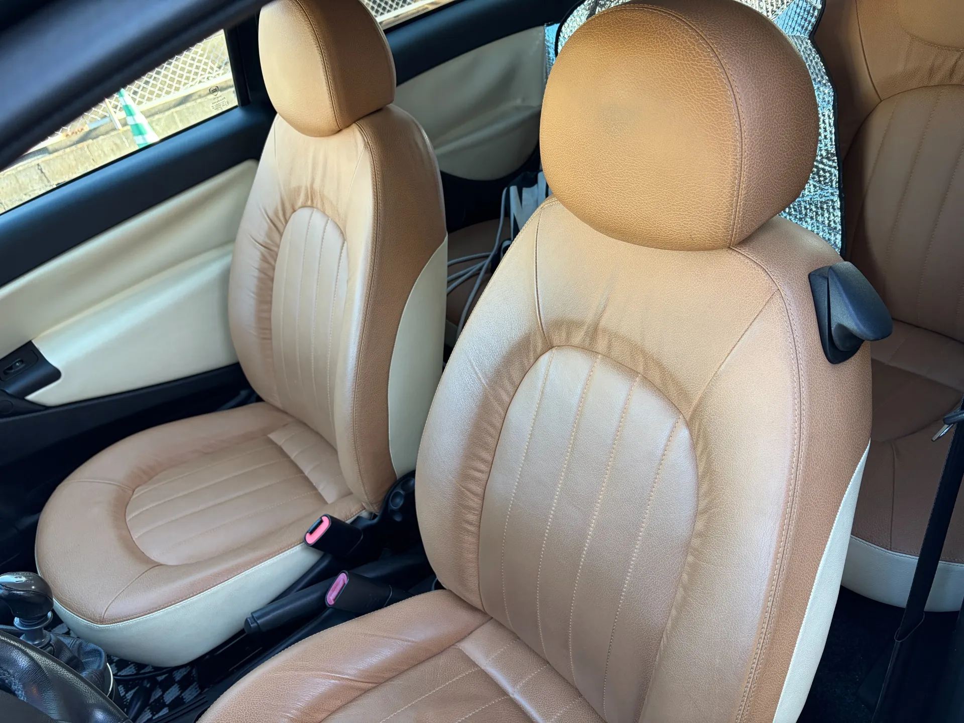 シートは、ほとんどがこの合皮ベージュ/アイボリー。