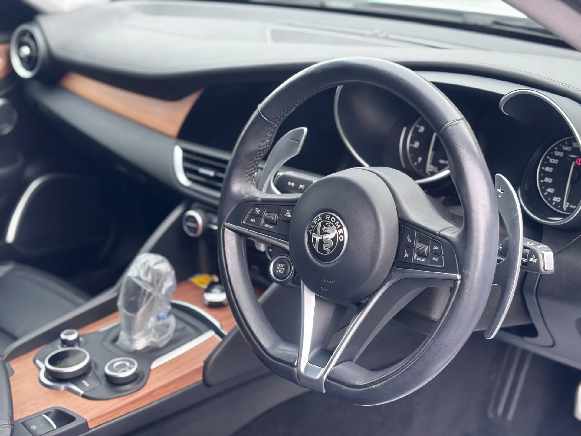 シートは黒レザーで、パネルはウッド。